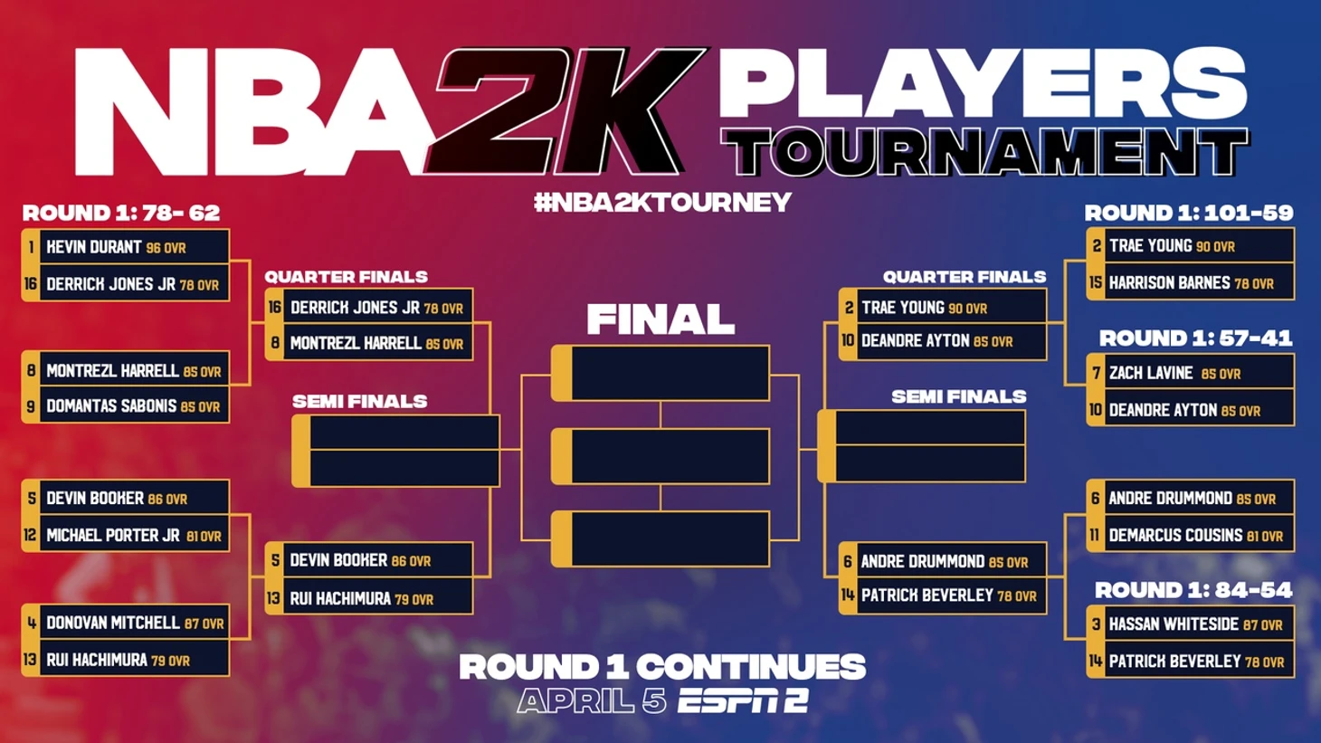 Вот и подошла к своей завершающей стадии игры первого раунда кибер-турнира НБА среди игроков. Фанаты лучшей лиги в первом раунде соревнований смогли посмотреть за восьми встречами, где участие в турнире приняли такие игроки: Кевин Дюрэнт, Трэй Янг, Хассан Уайтсайд, Зак Лавин, Деррик Джонс, Харрисон Барнс, Деандре Эйтон, Патрик Беверли, Девин Букер, Донован Митчелл, Руи Хачимура, Монтрезл Харрелл, Домантас Сабонис, Девин Букер, Майкл Портер, Демаркус Казинс и Андре Драммонд.