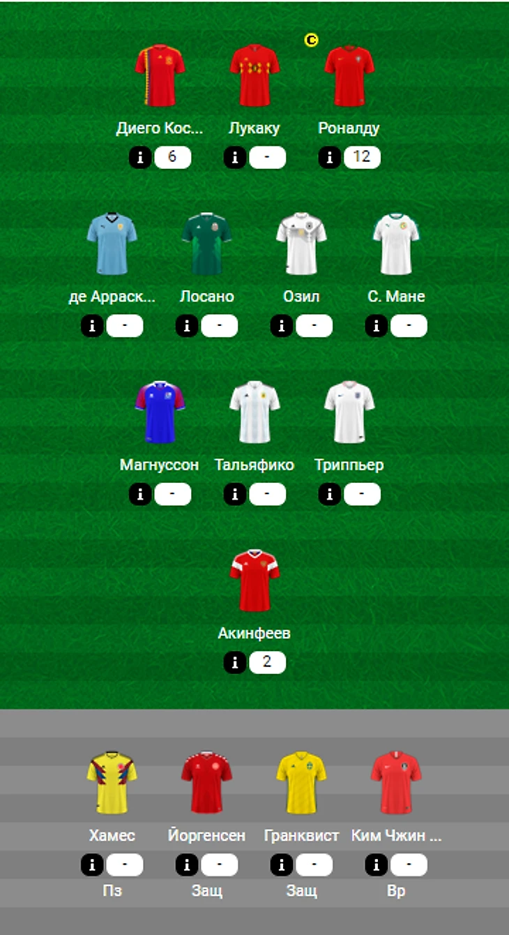 UPD: Вышел К. Санчес и, ежику понятно, он подал угол на Суареза. Де арраскаэта отличился тем, что дал шанс Хамесу показать себя во втором туре в моем фэнтэзи ростере на 2й тур: