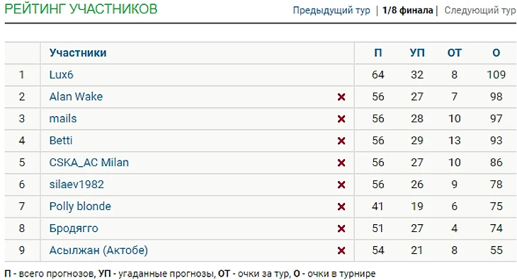 К слову, сыграли 54 матча, у меня 32 угадано, это 59,3%. Пока иду в топ 4% прогнозистов спортса.