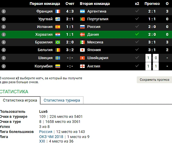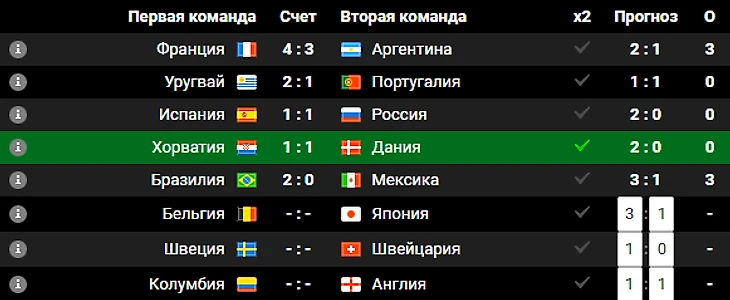 На флажке поменял прогноз с 2-0 на 3-1 в свете 2-0 у Бразилии. Не факт, что надо было трогать.