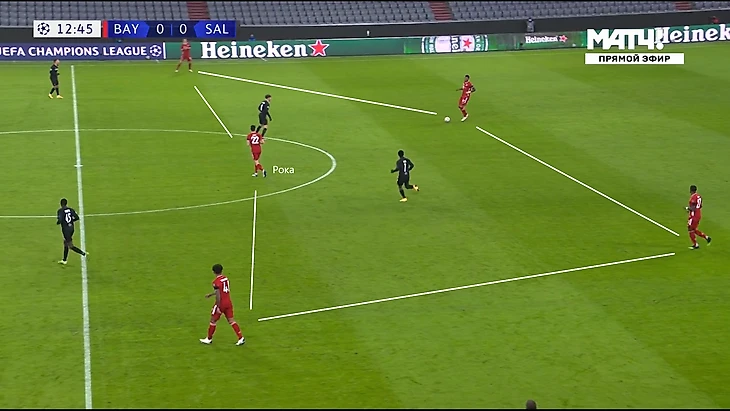 Рока и Горецка не имеют, такие же навыки для освобождения пространства как Киммих и Бавария решила просто напросто упростить игру. Они стали играть чаще во фланг, что как раз и нужно было Зальцбургу. Оттуда по их мнению было меньше угрозы, чем если бы Бавария атаковала через центр и это является абсолютно верным утверждением.