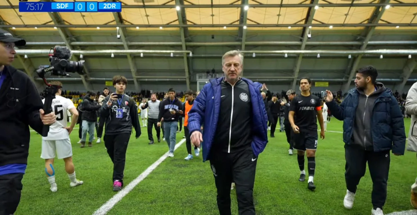 На 71-й минуте при счете 0:0 судья Алиби Мергазы поставил пенальти в ворота 2Drots. Главный тренер «дротов» Дмитрий Кузнецов в знак протеста увел команду в раздевалку. Решение не поняли президенты клуба – Жека (Евгений Бабенко) и Некит (Никита Панасюк). Журналисты сняли момент из раздевалки 2D: Жека уговаривал команду вернуться и угрожал аннулировать зарплаты за январь.