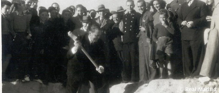 Дон Сантьяго Бернабеу закладывает первый камень будущего стадиона