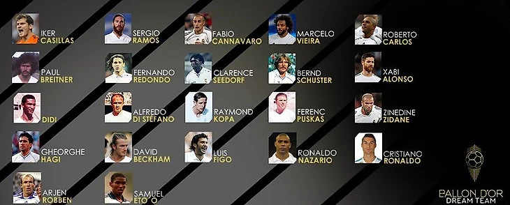 Сегодня издание представило атакующую линию. Таким образом, стали известны все кандидаты в сборную всех времен (110), из которых 22 номинанта представляли/представляют «Реал Мадрид»: Икер Касильяс, Роберто Карлос, Фабио Каннаваро, Серхио Рамос, Марсело, Пауль Брайтнер, Альфредо Ди Стефано, Раймон Копа, Ференц Пушкаш, Диди, Бернд Шустер, Георге Хаджи, Фернандо Редондо, Зинедин Зидан, Кларенс Зеедорф, Хаби Алонсо, Дэвид Бекхэм, Самуэль Это’о, Луиш Фигу, Арьен Роббен, Роналдо и Криштиану Роналду.
