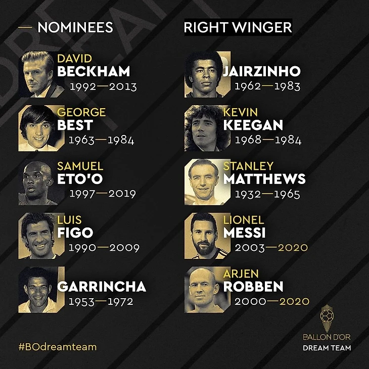 France Football решила не вручать «Золотой мяч» в этом году, потому что пандемия коронавируса повлияла на естественный ход футбола. Несмотря на это, сезоны удалось нормально закончить, и журнал придумал альтернативную награду. FF представила «Золотую команду мечты» — награду, которая будет вручена лучшим игрокам в истории, распределенным по позициям.