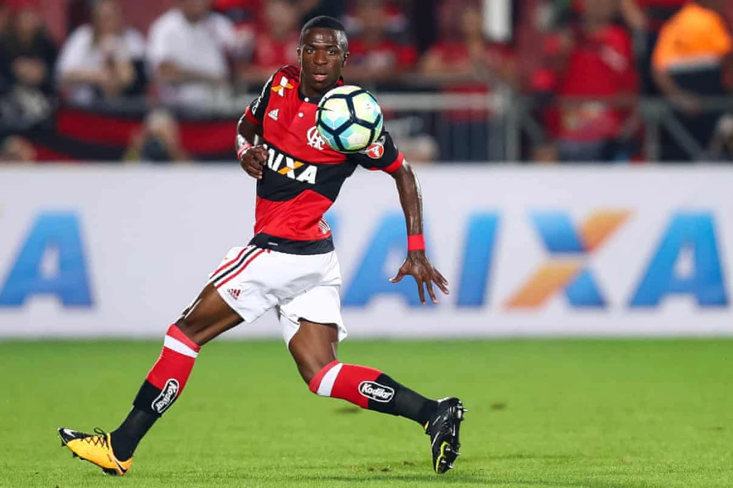 Винисиус присоединился к «Фламенго» в 10-летнем возрасте. Умелый и быстрый нападающий, носивший на спине восьмерку, он при любой возможности пускался в витиеватый дриблинг. Подросток быстро стал известен как один из самых многообещающих молодых игроков в Рио, а международная известность пришла к нему в 2017 году, после выступления за команду "Фламенго" U20 на Кубке Сан-Паулу де Футбол Жуниор - турнире, который ранее положил начало карьере Неймара, Габриэля Жезуса и Кака. Винисиус был на три года моложе многих других игроков. Представители "Реала" были впечатлены, и согласились заплатить "Фламенго" 39,6 миллиона фунтов стерлингов за его подписание в мае 2017 года. Юниору было всего 16 лет, а сыграл он лишь 17 минут во взрослом футболе.