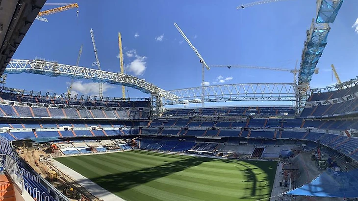 Самосвалы, 80-метровые краны, экскаваторы и рабочие полностью захватили стадион "Сантьяго Бернабеу", работа над которым продвигается такими темпами, что к лету 2022 года он будет полностью реконструирован. Пандемия позволила значительно ускорить процесс, и прогресс в работах уже очевиден.
