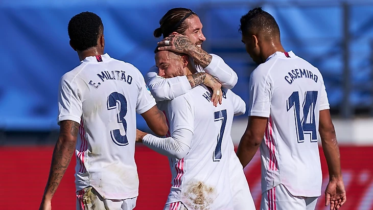 До 30-й минуты матча атака "Мадрида" раскачивалась, и не замедлял ее только Серхио Рамос, мощными пасами в касание расчерчивающий поле. На исходе получаса "сливочные" стали вдавливать "Уэску" в штрафную, команда нащупала ритм, и, в первую очередь это касается Эдена Азара, который подал сигнал к штурму неслыханным голевым выстрелом с 27 метров. О, этот неописуемый удар! Именно так должны возвращаться после длительного отсутствия мировые звезды, и бельгиец доказал, что действительно является таковой во всех смыслах.
