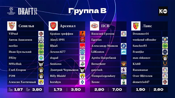Автор Sage Лига Чемпионов 2023/24. Командный драфт. 1й тур