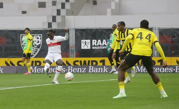 «Штутгарт» же катастрофически не хотел проигрывать, даже имея на одного игрока меньше. Танги Кулибали получил передачу на фланге, сместился в центр, обойдя одним движением двоих соперников, и пробил в дальний угол. Мяч попал в ногу Эмре Джана, чем дезориентировал Кобеля, и залетел в ближний. Спустя 6 минут хозяева и вовсе сравняли счёт. В суматохе после подачи углового лучше всех разобрался Йоша Вагноман.