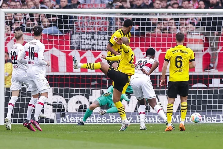 «Бавария» принимала, набравший ход, «Хоффенхайм», а дортмундская «Боруссия» отправилась в гости к борющемуся за выживание «Штутгарту». Стартовый натиск команды Томаса Тухеля принёс результат на 17-й минуте. Подбор после углового достался Коману, который не стал бить, а нашёл передачей Павара на линии вратарской. Накрыть французского защитника никто не успел и он легко переиграл голкипера.