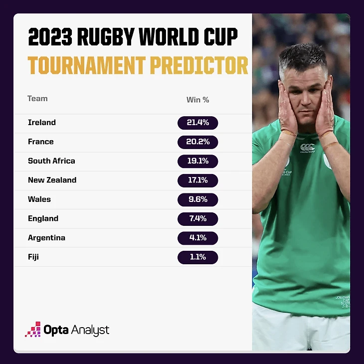 В преддверии Кубка мира по регби 2023 года OPTA сделала прогнозы на состав участников четвертьфиналов, поэтому будет справедливо проверить, насколько они оправдались.