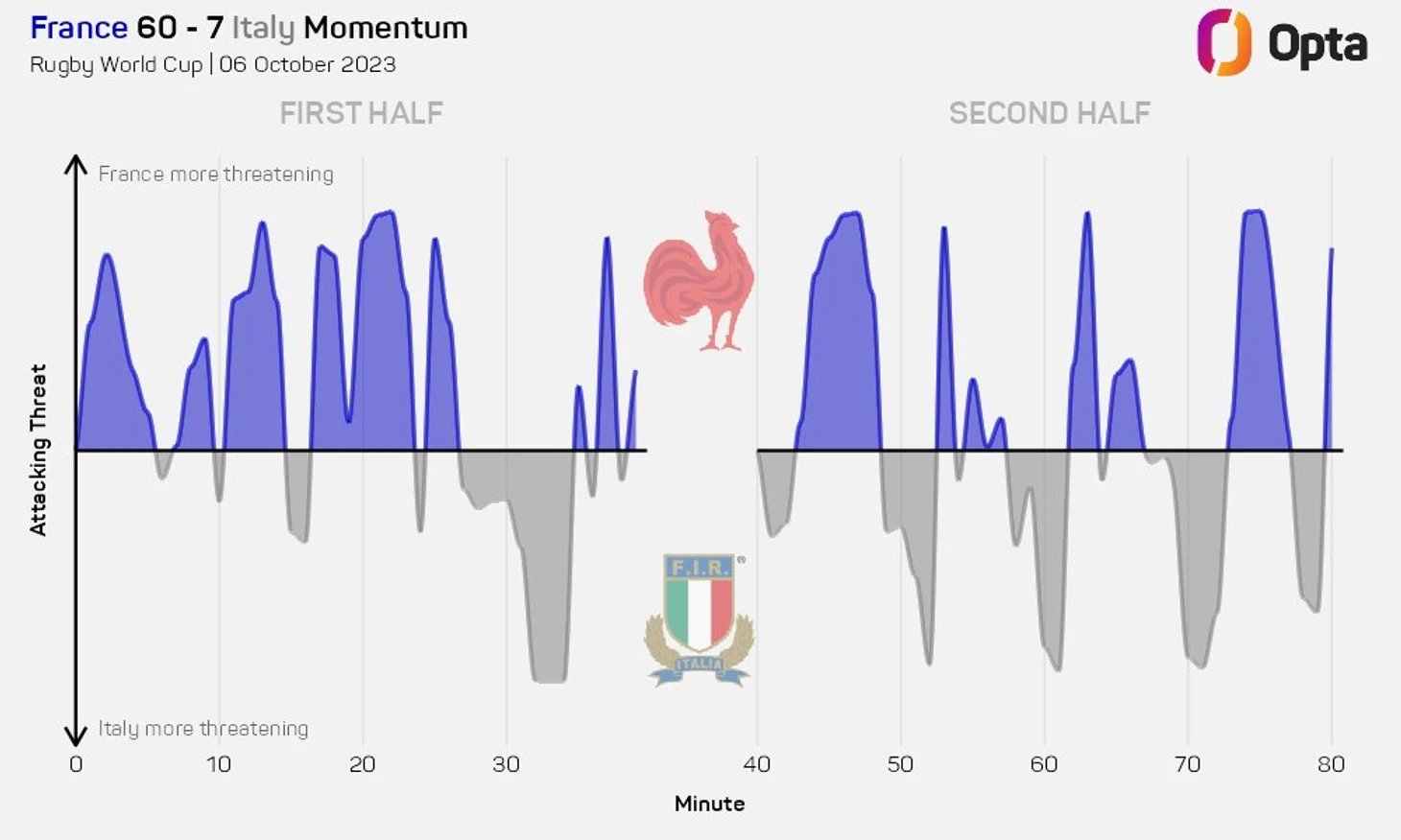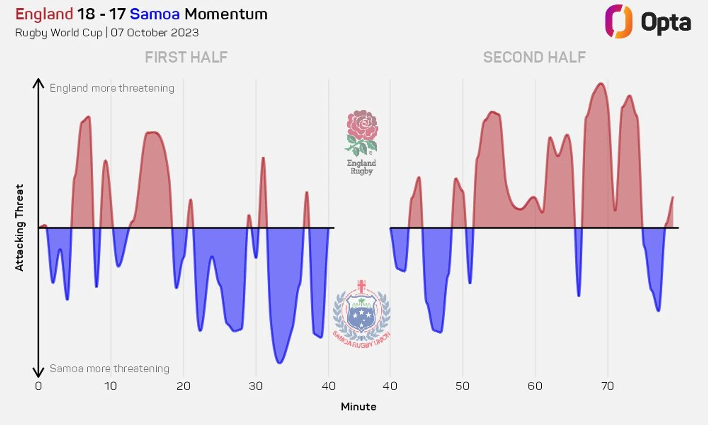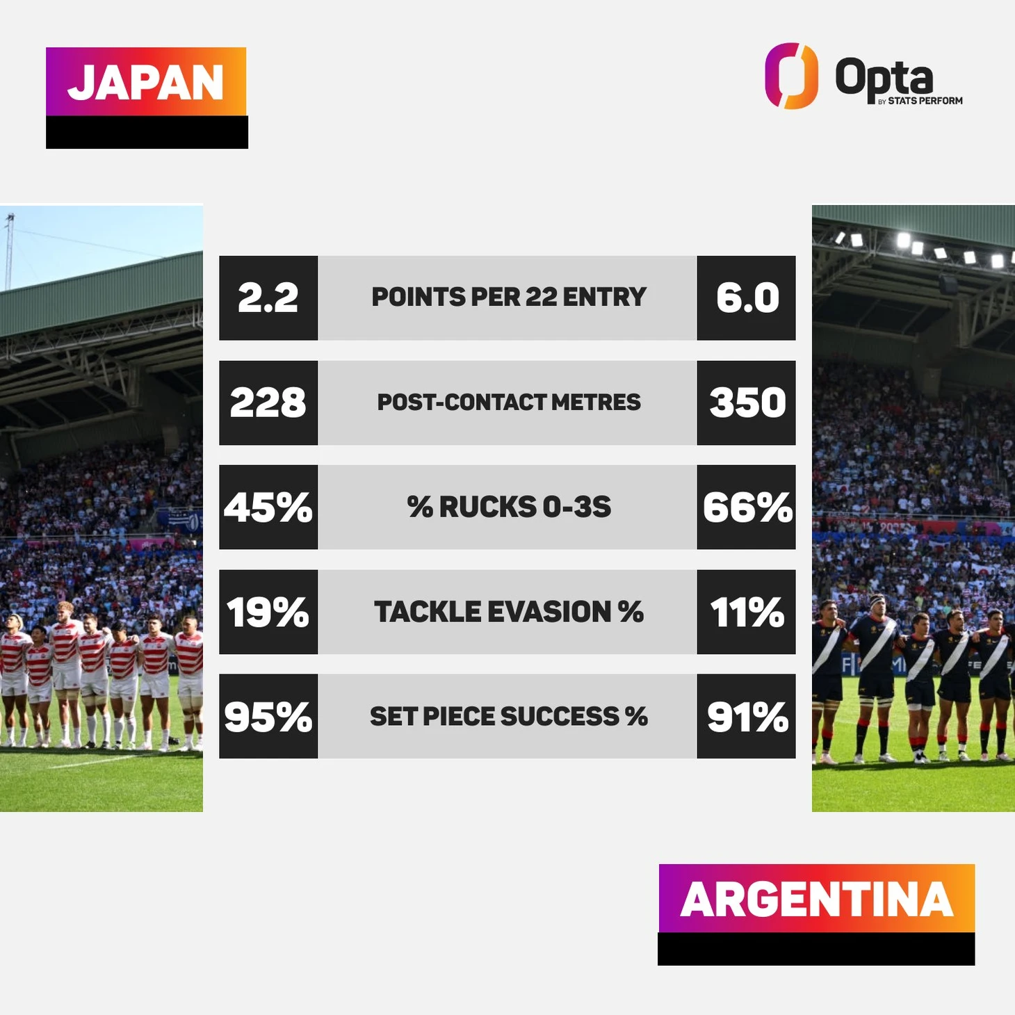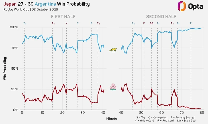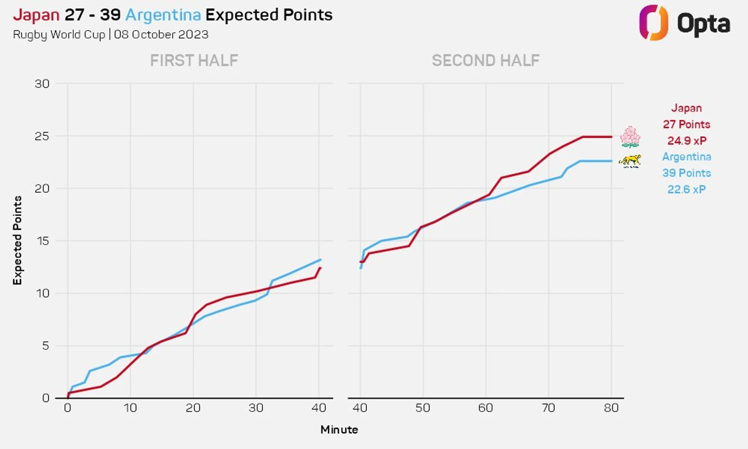 Это был невероятно интересный матч, а игра сборной Аргентины высокоэффективной. «Пумы» достигали красной зоны Японии, набирая очки за каждый свой вход в японские «22». Их средний показатель в шесть очков за вход был лучшим показателем среди всех команд, добившихся успеха и сделавших более одного входа в «22» за игру на Кубке мира в этом году.