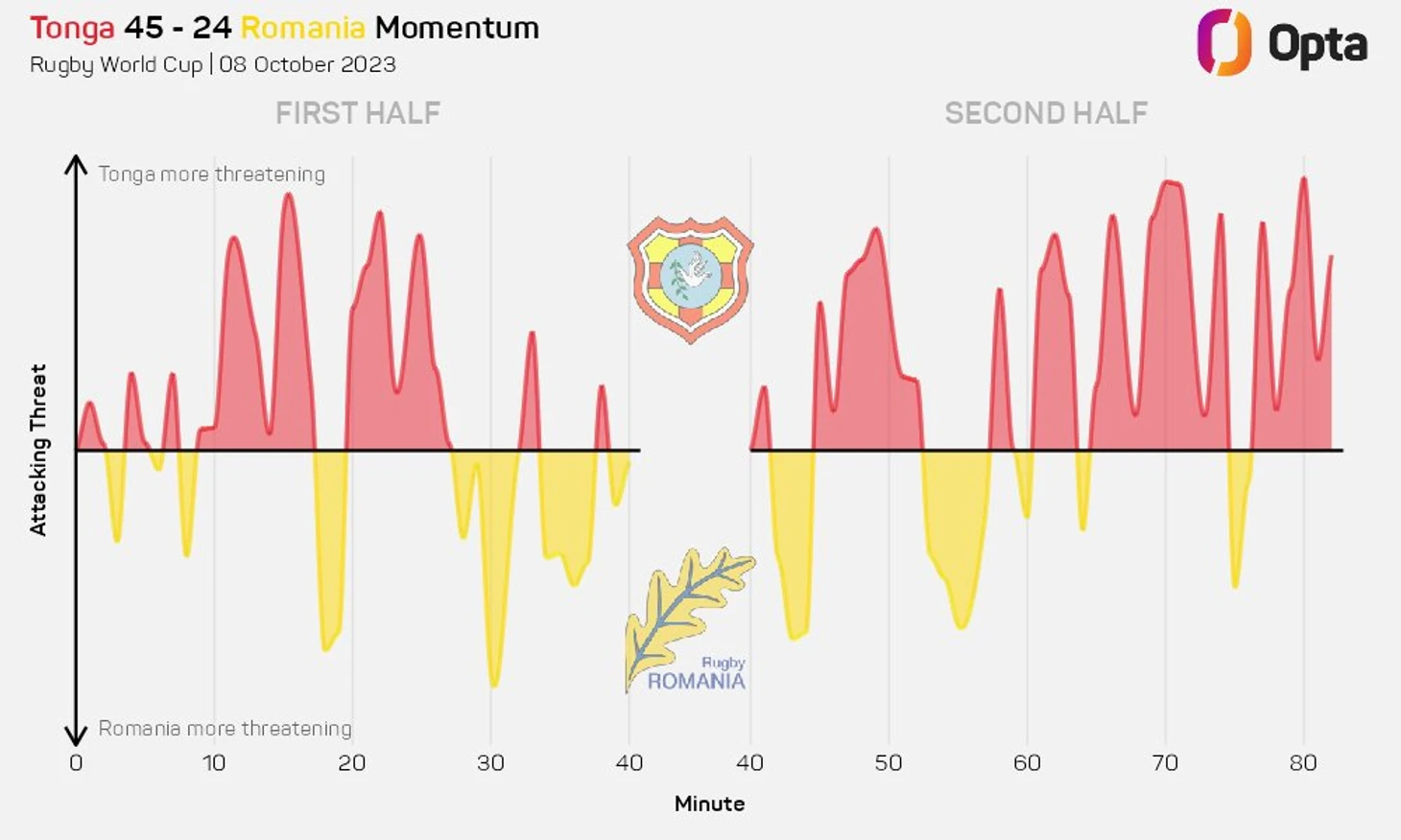 Румыния набрала всего восемь очков в первых трех матчах, но улучшение результатов в этой игре означает, что, несмотря на поражение, они избежали позорного побития рекорда по наименьшему количеству очков в матчах Кубка мира, рекорда, который им же и принадлежит (14 в 1995 году) напополам с Канадой (14 в 2019 году).