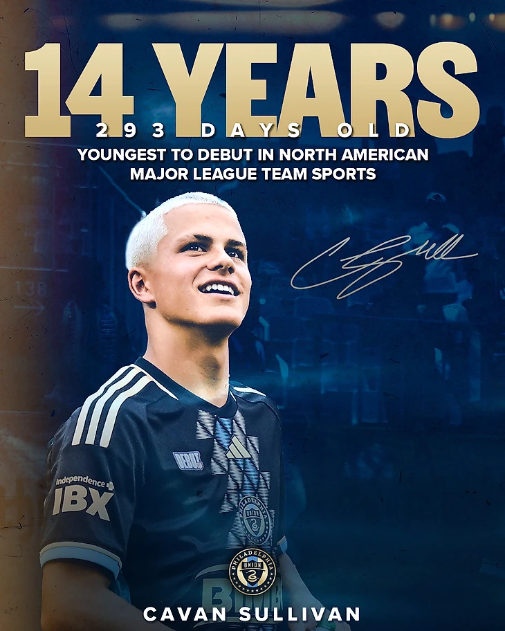 Когда Каван Салливан стал известен широкой публике? Летом 2023 года проводился чемпионат КОНКАКАФ Ю15, где сборная США тоже принимала участие. На тот момент Кавану было 13 лет, а его партнерам и оппонентам по 15, что в подростковом возрасте - ощутимая разница. Но он помог сборной США выиграть турнир и стал лучшим игроком турнира. Да, в 13 лет. Именно тогда его начали воспринимать всерьез. Уже в марте 2024 года он дебютировал во втрой команде (если переводить на русский - в дубле) «Филадельфии». Дебютировал, сыграл в 10 матчах, забил 2 гола и отдал голевую передачу, в 14 лет, в турнире, где футболисты намного старше него.