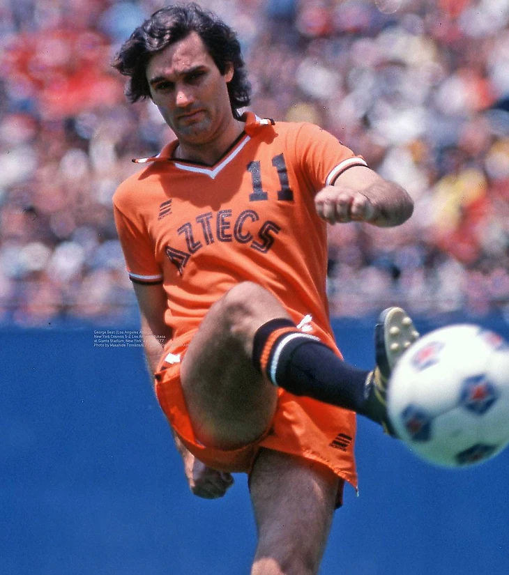 Джордж Бест – культовый футболист, игравший за «Манчестер Юнайтед», в составе которого он и выиграл в 1968-м году Золотой Мяч. После «МЮ»карьера Беста заносила его в экзотические места, по футбольным меркам: ЮАР, Гонконг, США, Австралия. В США, в разные годы, Джордж играл за «Лос Анджелес Ацтекс»,«Форт-Лодердейл Страйкерс» и Сан-Хосе Эртквейкс», за которые в общей сложности сыграл 150 матчей и забил 57 голов.