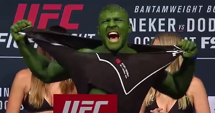 На официальную церемонию взвешивания перед турниром Куцелаба пришел в образе зеленого великана Халка.
