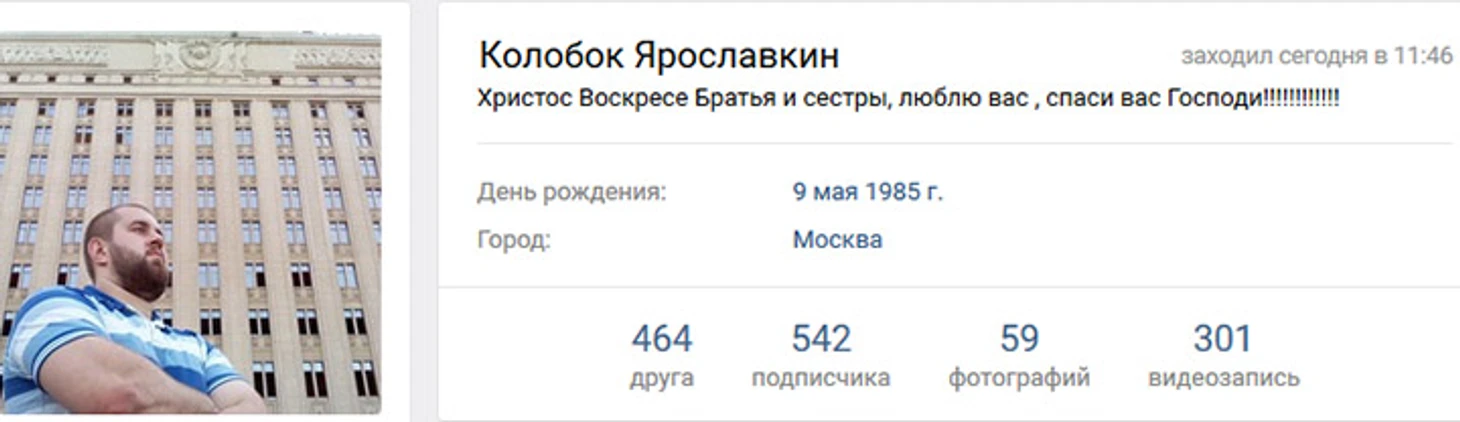 Чуть позже выяснилось, что нападавшим оказался 32-летний москвич, связанный с движением православных патриотов «Сорок сороков». Вот картинки с его страницы в VK.
