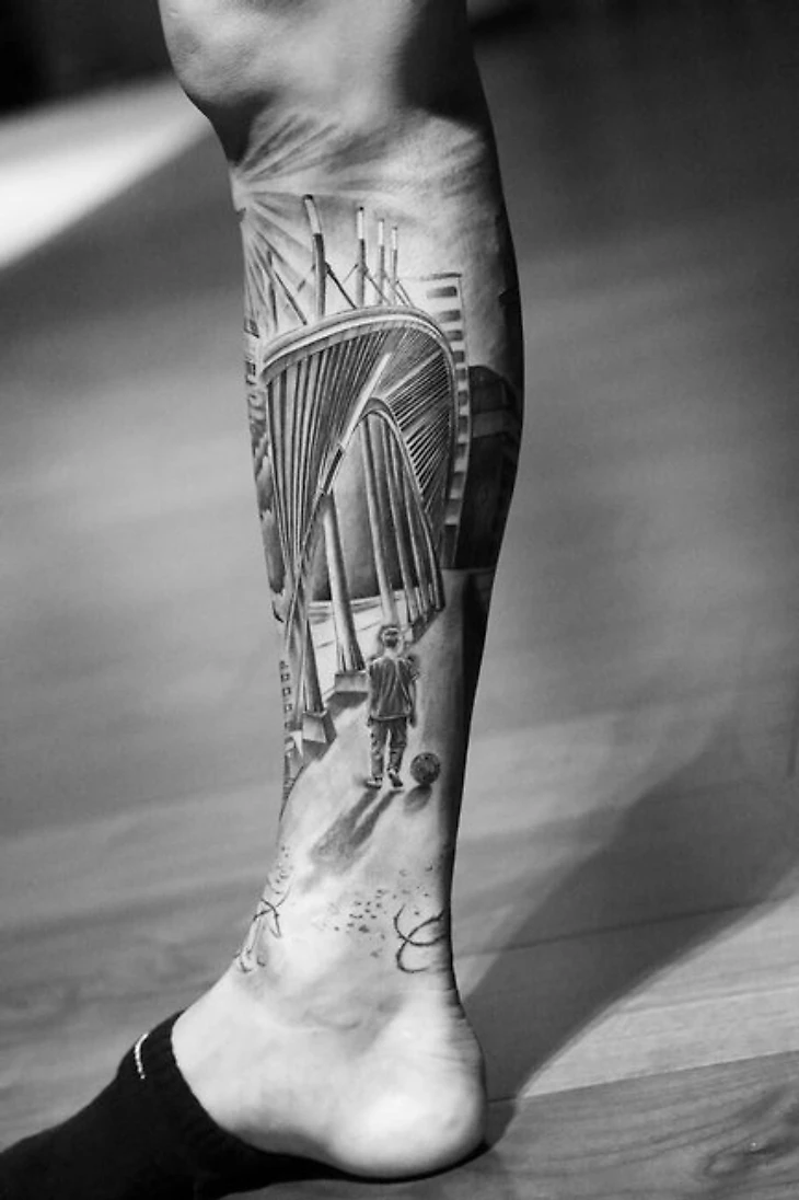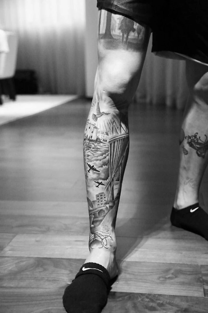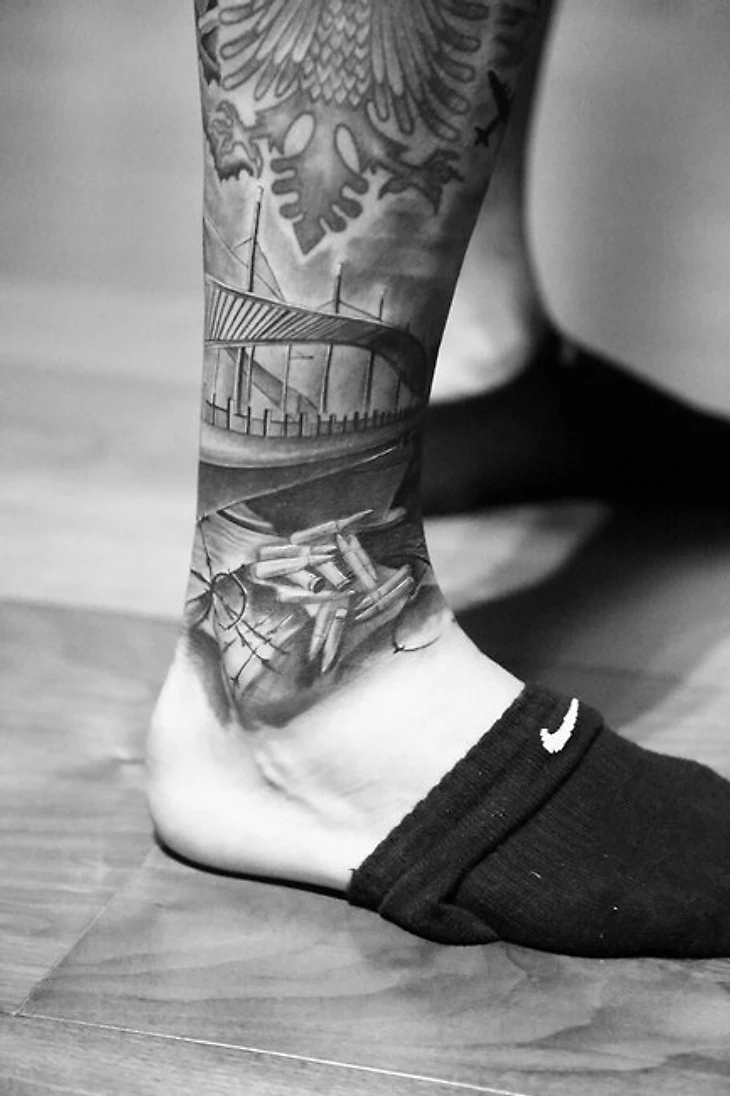 Швейцарский полузащитник «Уотфорда» Валон Бехрами сделал татуировку о непростом детстве. На правой ноге изображен мальчик, играющий в футбол на улице, пустые гильзы и военные самолеты.