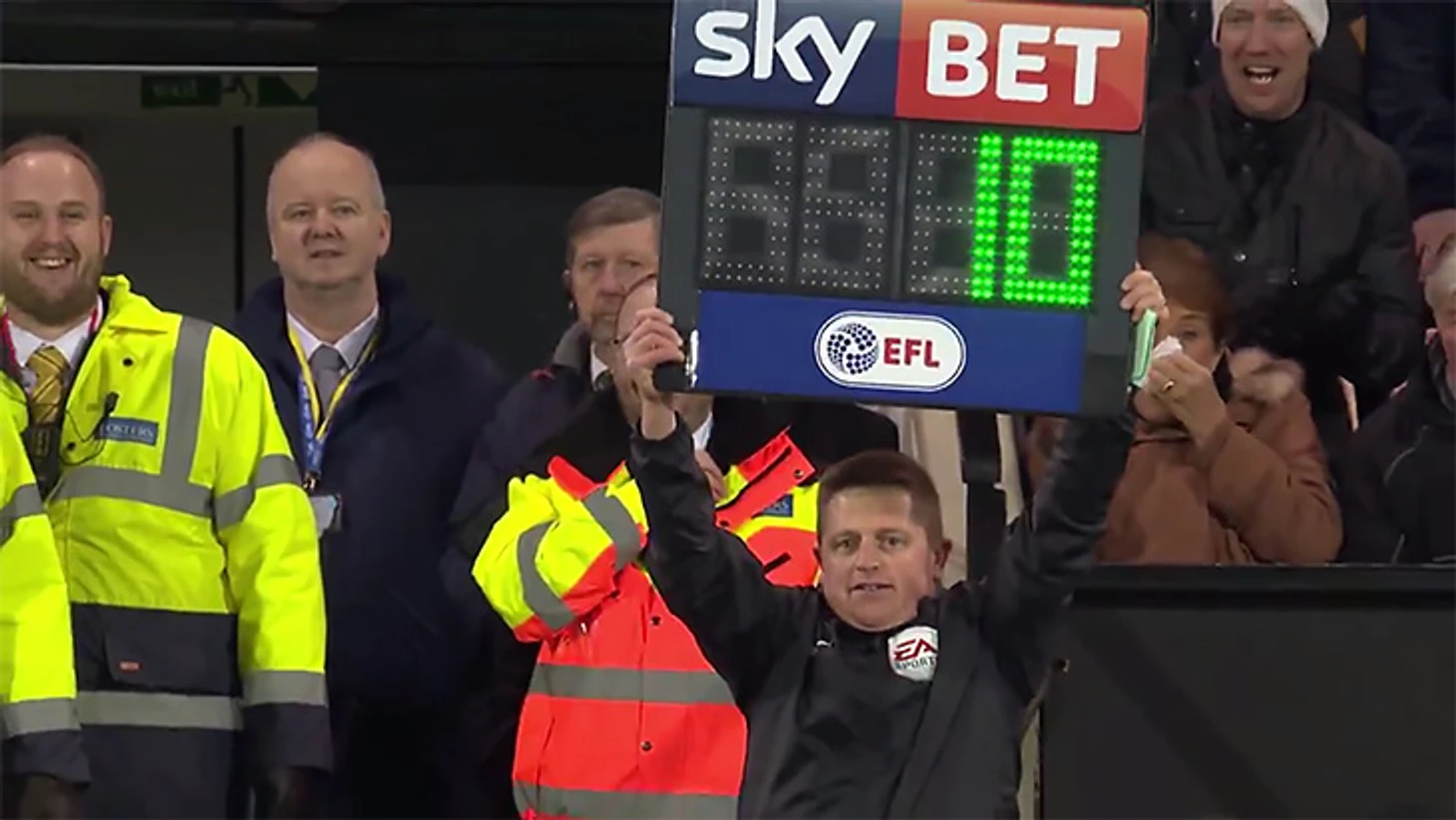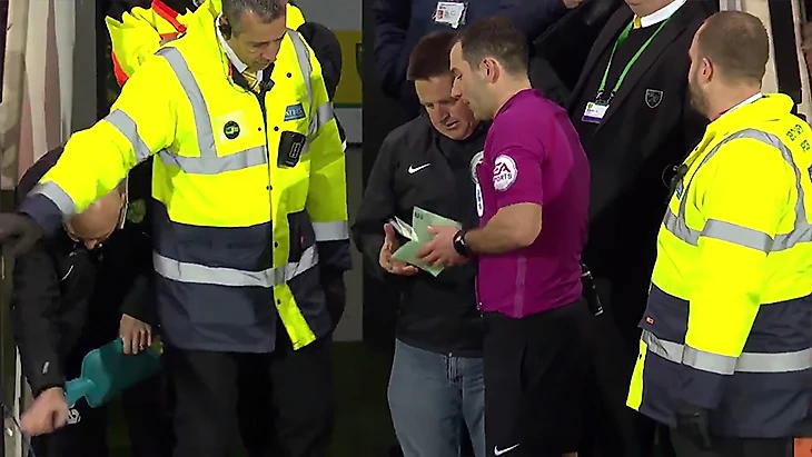 За 6 минут до конца матча чемпионшипа «Норвич» – «Престон» (1:1) случилось ЧП: боковой судья Марк Джонс получил травму, его заменил резервный арбитр Энди Дэвис. А кто дальше будет поднимать табло, уведомляя всех о заменах и добавленном времени? Еще одного судьи на матче не было, и главный уже собирался уводить команды с поля, как вдруг на трибунах послышался крик «Я судья, я судья!».