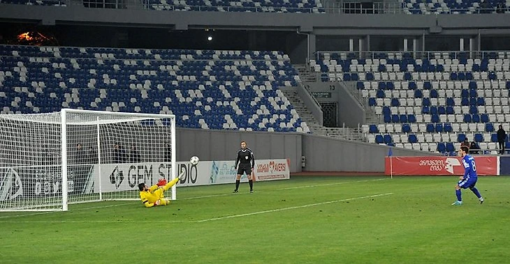 А на 94-й минуте арбитр назначил пенальти в ворота гостей. Торпедовцы отчаянно спорили, фанаты рвали и метали кресла – не помогло. Отар Китейшвили пробил низом и строго по центру, вратарь Роин Квашквадзе метнулся в угол, но успел подставить ногу.