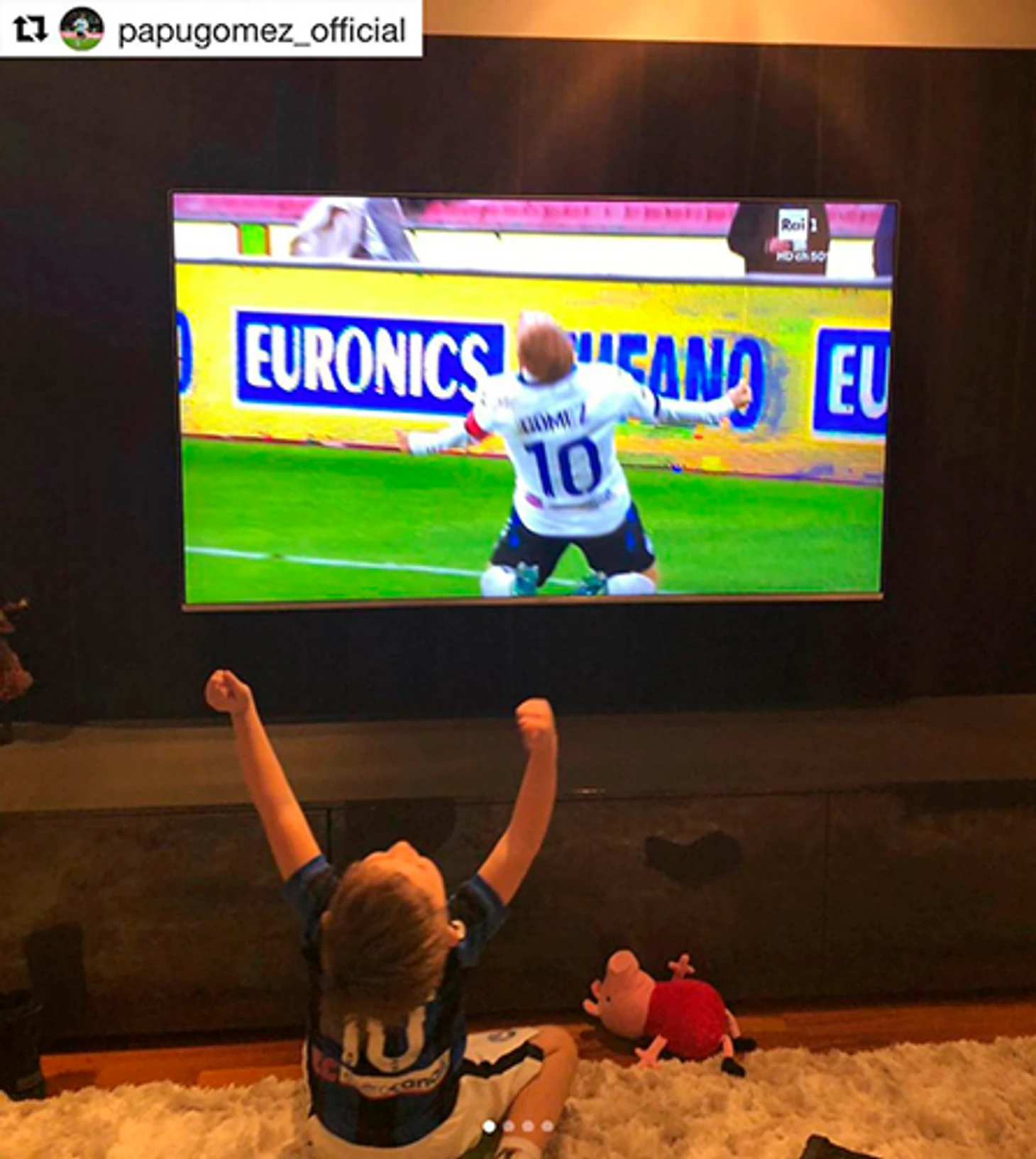 «Аталанта» обыграла «Наполи» со счетом 2:1 в Кубке Италии. Победный мяч забил Алехандро Гомес на 81-й минуте встречи. Сын полузащитника смотрел за игрой отца по телевизору. Когда Гомес забил, сын отпраздновал гол в стиле отца. Как раз в это время Алехандро сам праздновал забитый мяч, но на стадионе. Приз «милота недели» отходит этой парочке.