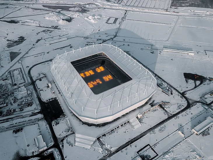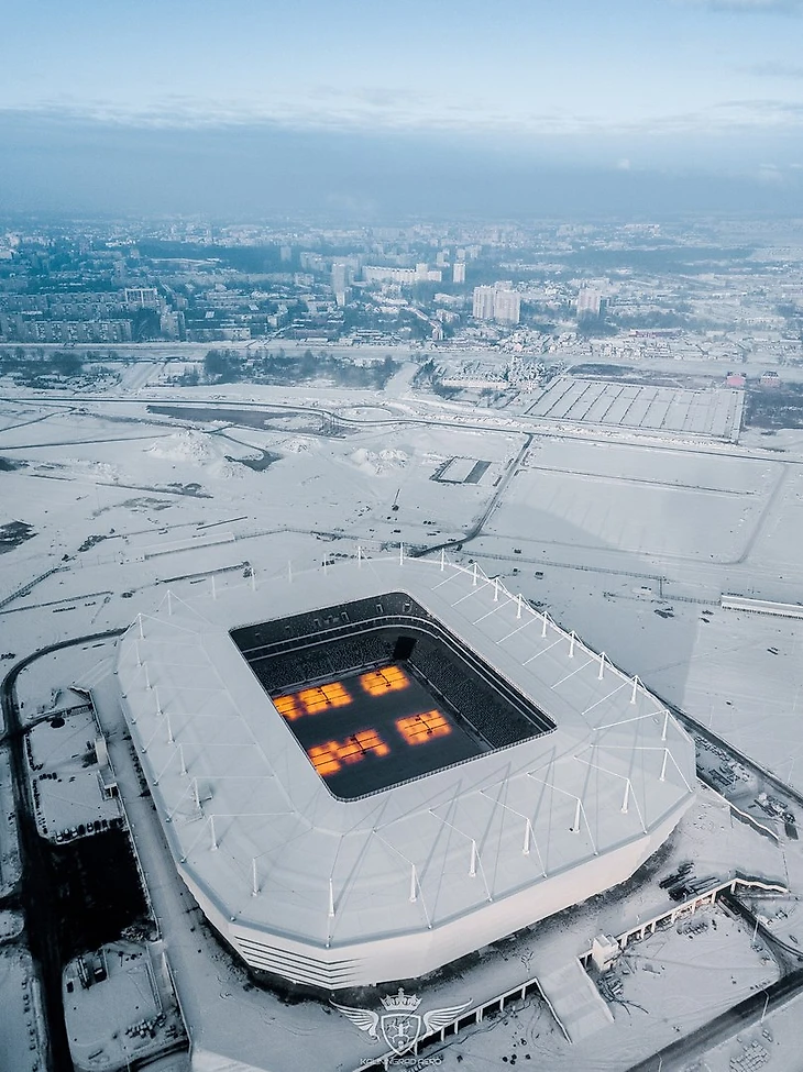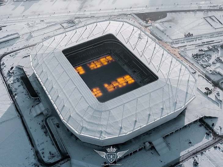 Шикарный вид на заснеженный стадион ЧМ-2018 в Калининграде