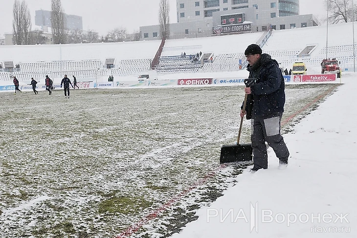 Суровый русский футбол. Болельщики «Факела» на игре с «Балтикой». Клетка, снег, ни фига не видно: