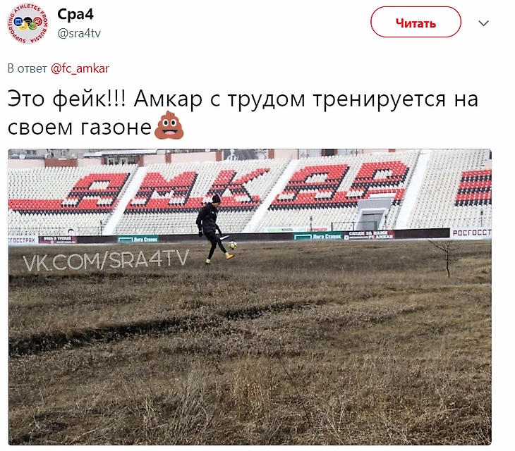 Сегодня твиттер пермяков опубликовал фото подготовки команды на стадионе «Звезда». Вот так выглядит плохой газон: