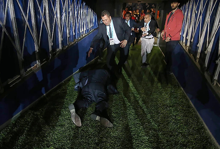 Что-то прилетело в голову запасному вратарю «Бешикташа» Толга Зенгину, а потом и главному тренеру Шенолу Гюнешу.