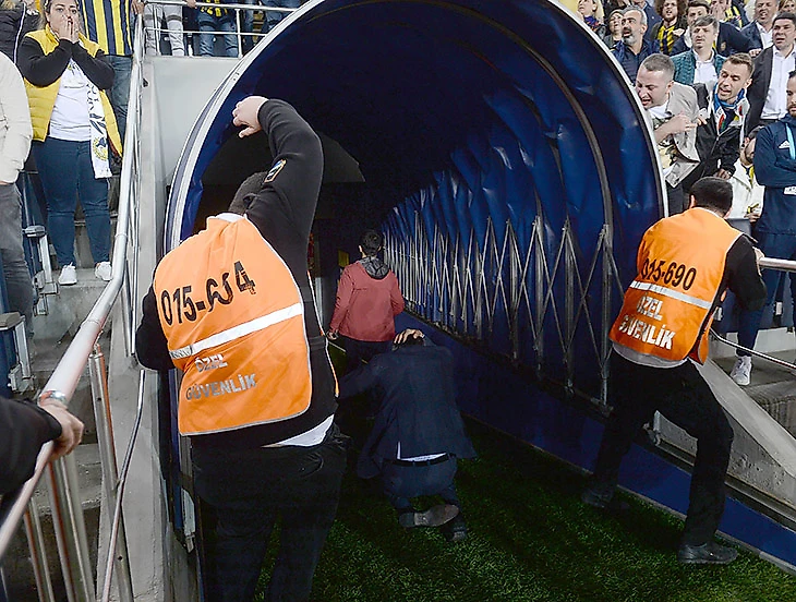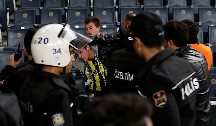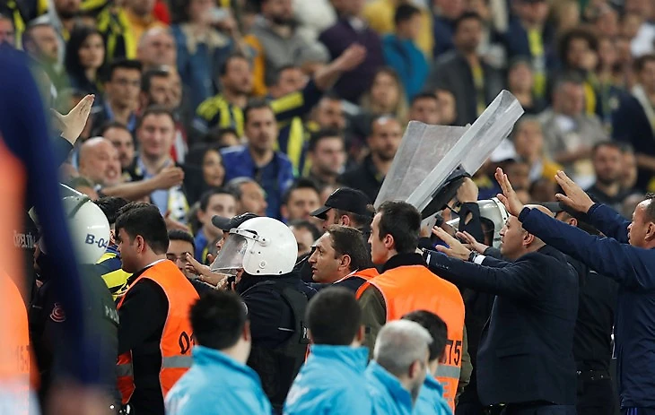 Судья Мете Калкаван останавливал матч три раза, но при четвертой остановке стадион стал неконтролируемо безумствовать.
