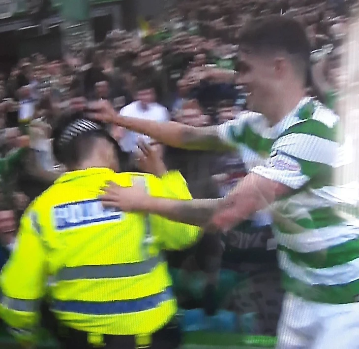 И в-третьих, потрясающий, невероятный, фантастический Микаэль Люстиг! Сначала отпраздновал гол в фуражке полисмена: