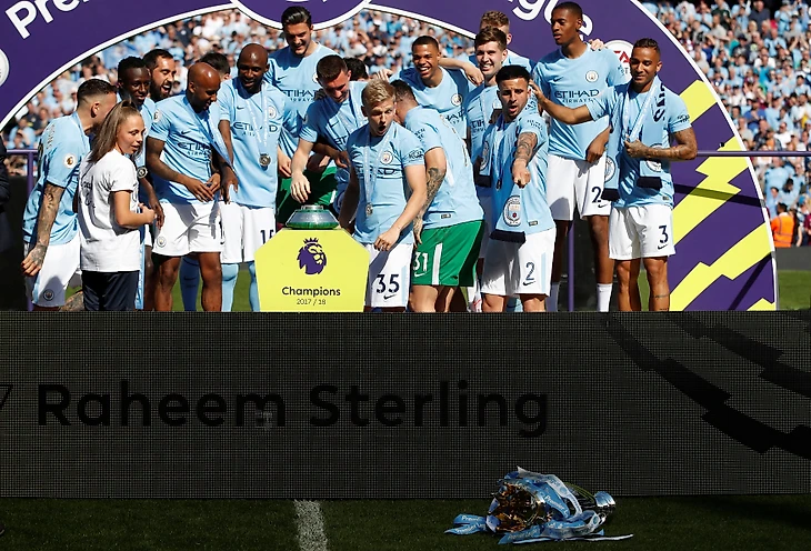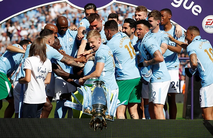 После матча 37-го тура АПЛ против «Хаддерсфилда» (0:0) состоялась церемония награждения «Манчестер Сити». «Горожане» обеспечили себе чемпионский титул еще 15 апреля, а 6 мая команде вручили медали и кубок.