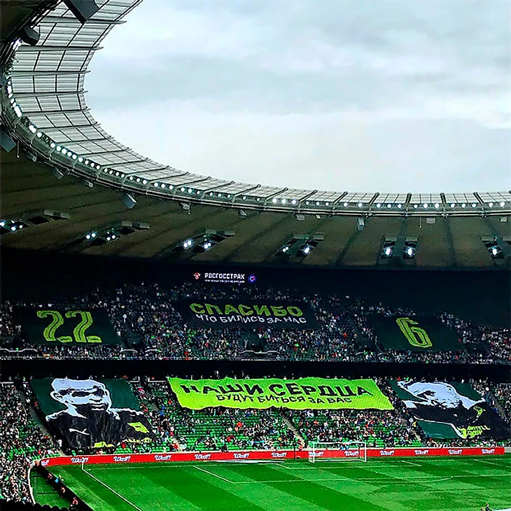 В честь легионеров на газоне стадиона в Краснодаре выстригли футболки с их номерами.