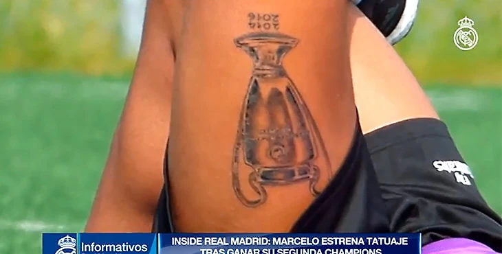 После победы в Лиге чемпионов в 2016-м на левом бедре Марсело появилась татуировка, о которой рассказало даже клубное телевидение «Реала».