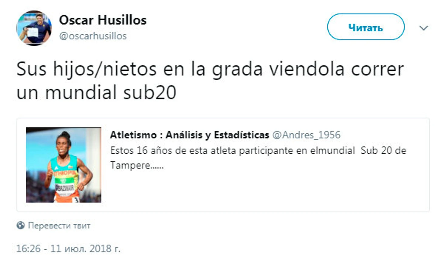 По регламенту, на молодежных чемпионатах за проверку возраста отвечает как раз IAAF. Внешность Гермавит вызывает вопросы не только у болельщиков, но и у спортсменов – испанский спринтер Оскар Хусильос не пощадил.