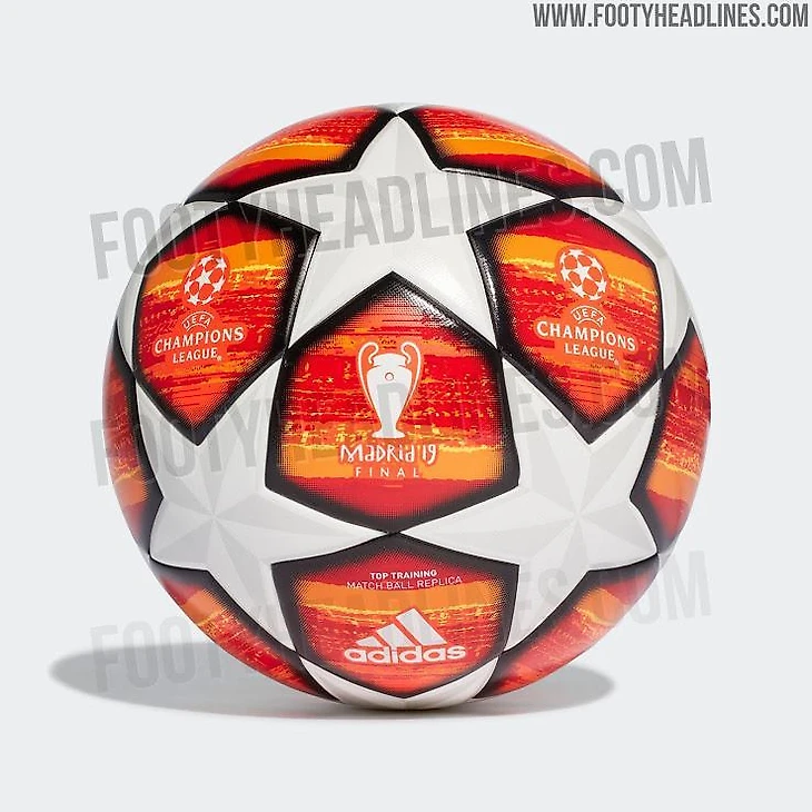 Но это не все. Мяч для финала ЛЧ исполнен в красно-желтых цветах, а в пространствах между звездами изображен стадион «Ванда Метрополитано», где пройдет игра: