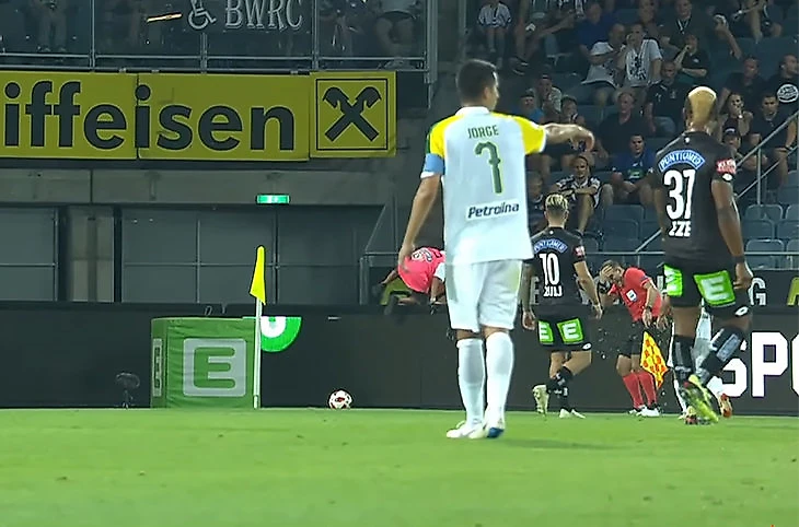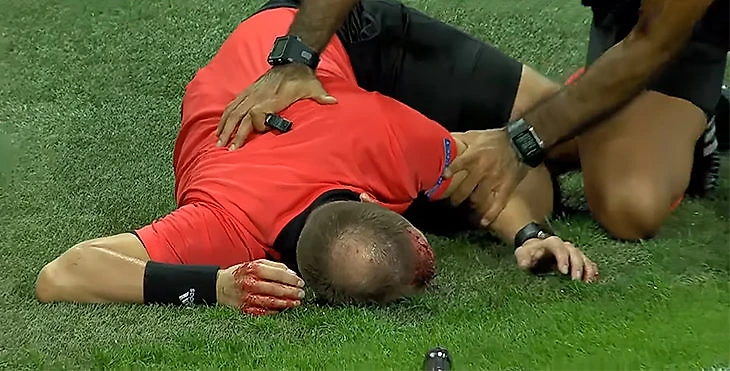 Лайнсмену разбили голову пластиковым стаканом. Матч ЛЕ прервали на полчаса