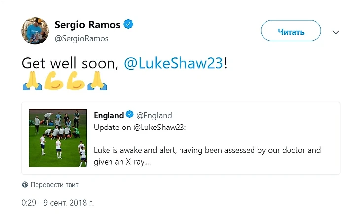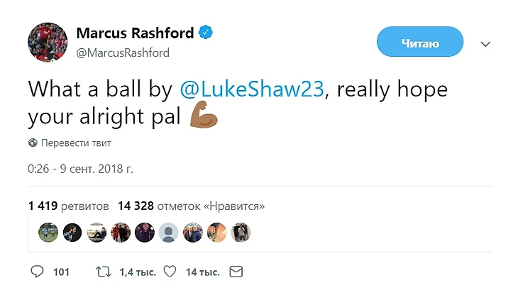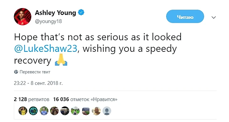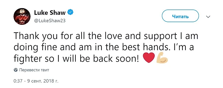 Из-за перелома ноги в сентябре 2015 года Люк Шоу пропустил десять месяцев, поэтому все перепугались по поводу его состояния. После матча англичанин твитнул: