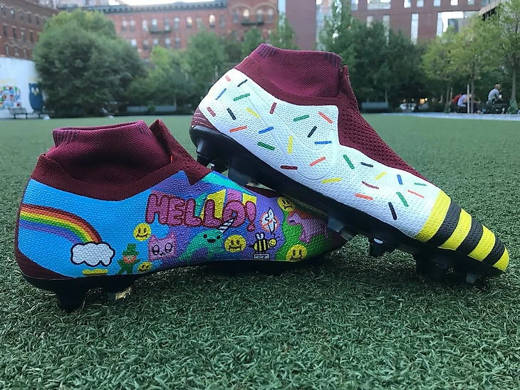 Теперь в следующем матче МЛС «Ред Буллс» сыграют в бутсах, украшенных изображением Соника, Губки Боба, Бэтмена и Пикачу. Нарисовала все Джесси Кавана, дизайнер команды НБА «Бруклин Нетс» (у нее есть сайт с красивым портфолио).