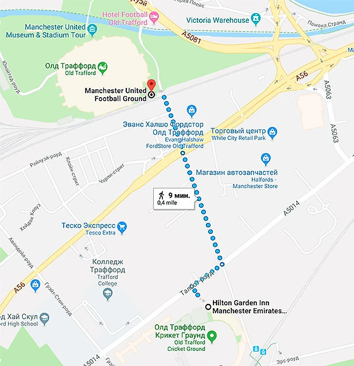Перед «Ювентусом» позориться совсем не хотелось, поэтому «МЮ» нарушил традицию и остановился в другом отеле – Hilton Garden Inn. Он находится менее чем в километре от стадиона, пешком идти от силы 9 минут (оценка карт Google).