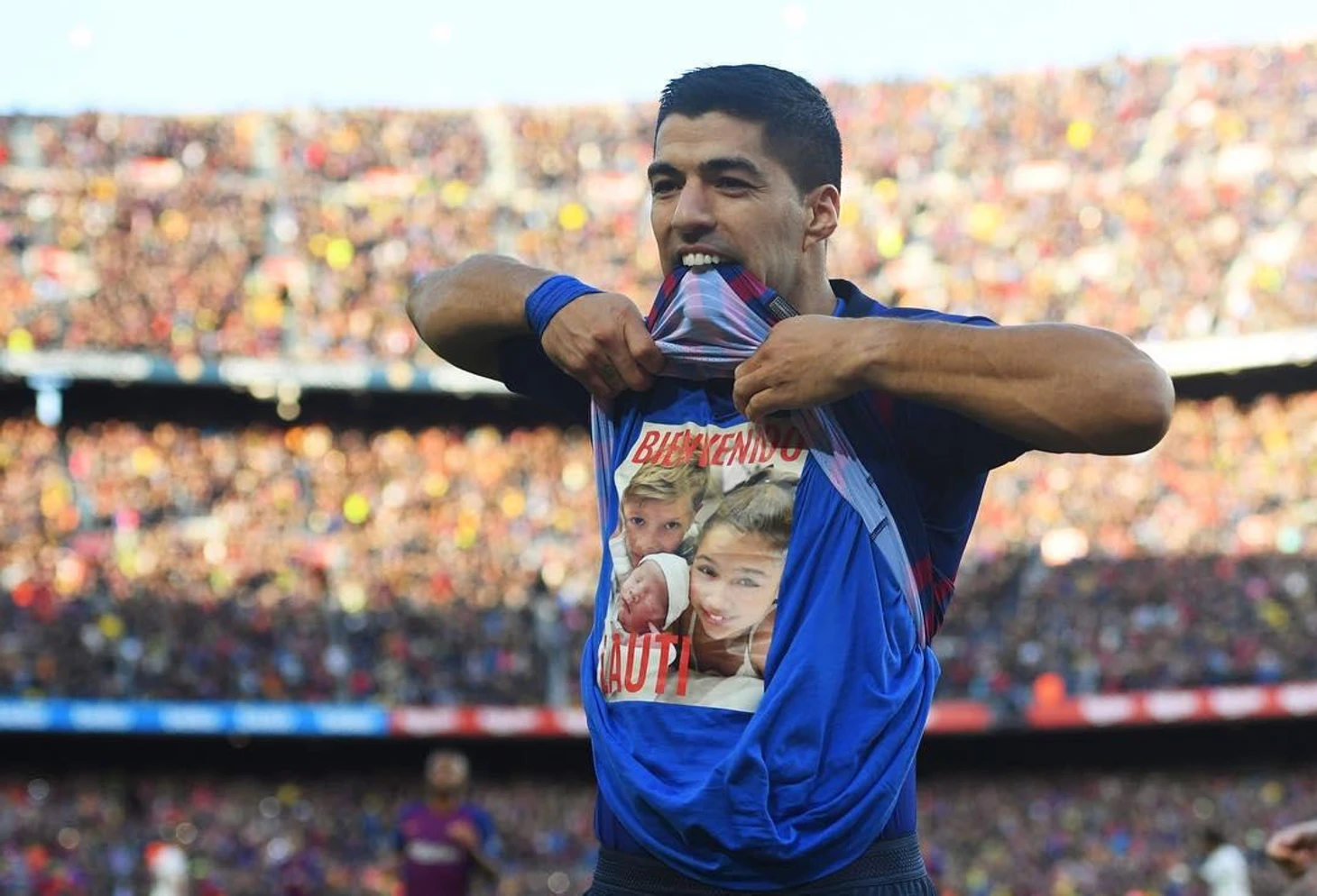Под игровым джерси у Луиса оказалась фотография с детьми – Дельфиной, Бенхамином и новорожденной Лаутой.