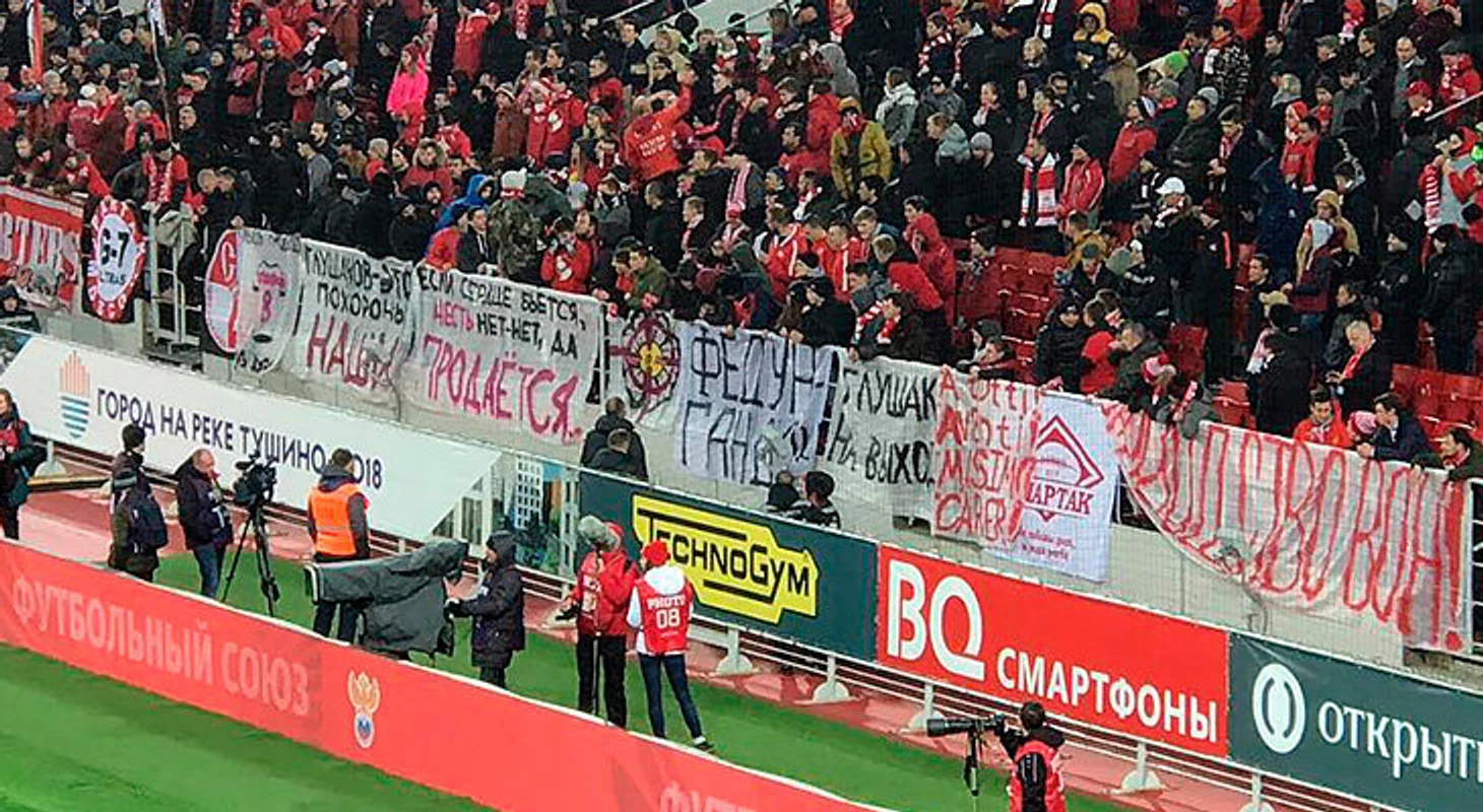 И Дениса Глушакова. Полузащитник вышел в старте впервые со 2 сентября. Фанаты освистывали каждое касание капитана, а перед игрой зарядили «Глушаков – гондон» – как раз в этот момент на «Открытие» запустили громкие рекламные ролики.