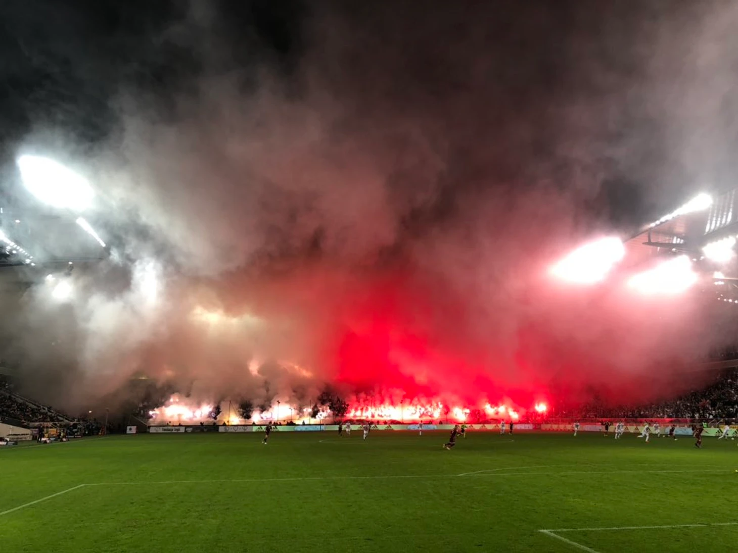 Роскошное файер-шоу фанатов «Легии». Из-за него остановили матч на 15 минут