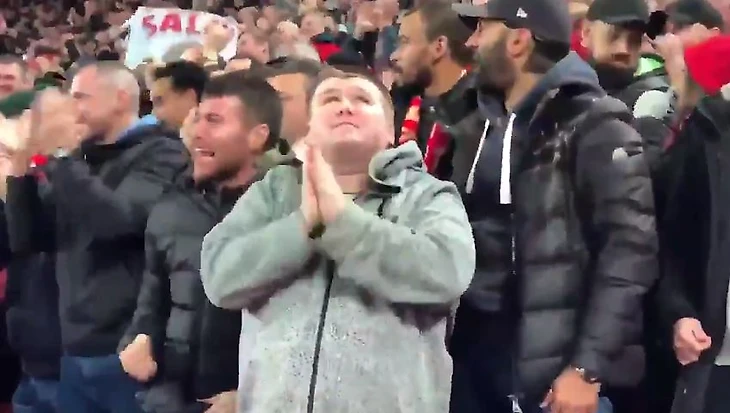 Когда «Ливерпуль» забил «Наполи» спасительный гол, камера выхватила на трибуне болельщика. Он не видел удар Салаха, но друг рассказал, как все было.