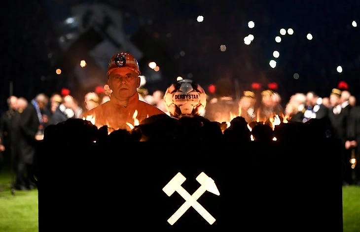 Мегаперф «Шальке» в честь закрытия последней шахты страны: уголь, оркестр, люди в форме