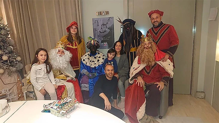 На снимке также семья Иньесты. Фото приурочено к Празднику трех королей (Богоявлению), а люди нарядились в персонажей из Евангелие. Два человека с черными лицами и персонаж с короной на голове – это Три царя (волхва), которые, согласно Библии, пришли с Востока, чтобы поклониться младенцу Иисусу и принести ему дары.
