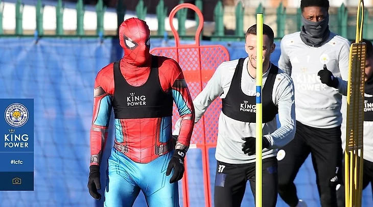 Джейми Варди провел тренировку «Лестера» в костюме Человека-паука.