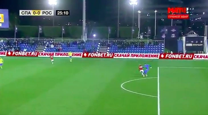 Вратарь «Ростова» запутался на линии штрафной и отдал мяч Луису Адриано, а тот вывел Педро Рошу на пустые ворота, но Педро Роша попал в защитника.