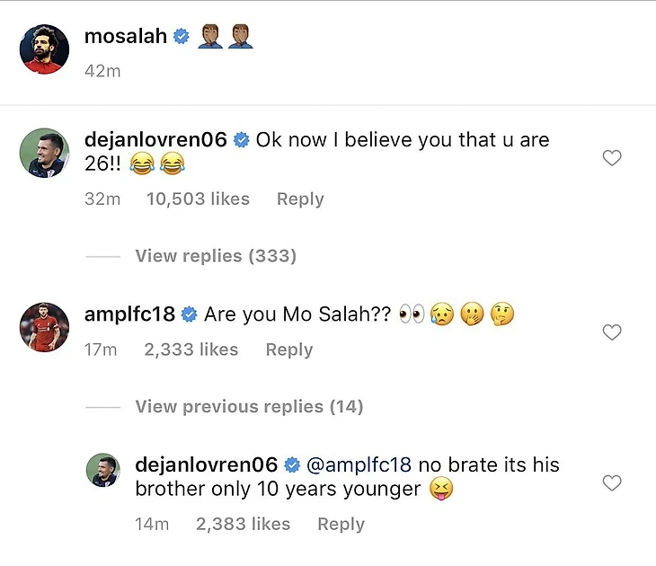 Самым популярным вопросом в инстаграме были: «Это точно Мо Салах?». А Деян Ловрен теперь верит, что его другу 26 лет.